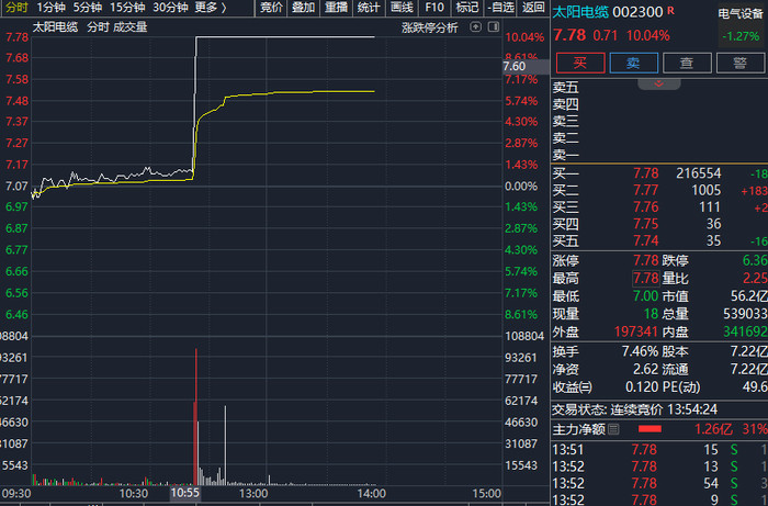 在上述消息的刺激下,12月2日盘中,福建板块多只跟算力相关的股票大幅异动。其中,太阳电缆从拉升动作开始至涨停板,用时仅2分钟。鸿博股份盘中也一度触板,恒锋信息一度大涨超16%。